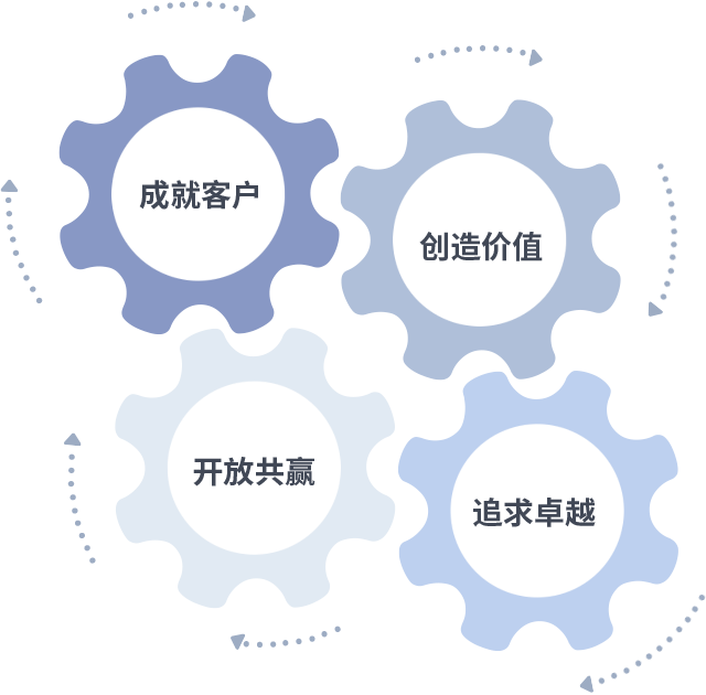 成就客户是一切决策的出发点,创造价值是衡量所有工作的标准,追求卓越是Stake官网做事做人的态度,开放共赢是Stake官网的格局也是最终的结果。价值观的齿轮环环相扣,推动着组织里的每个人不断向前。